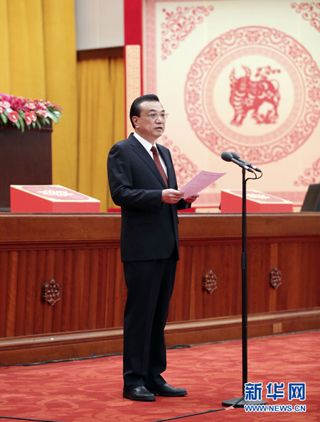 党和国家领导人李克强、栗战书、汪洋、王沪宁、赵乐际、韩正、王岐山等出席团拜会,李克强主持。