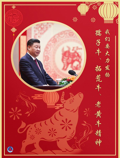 习近平强调,在中华文化里,牛是勤劳、奉献、奋进、力量的象征。人们把为民服务、无私奉献比喻为孺子牛,把创新发展、攻坚克难比喻为拓荒牛,把艰苦奋斗、吃苦耐劳比喻为老黄牛。前进道路上,我们要大力发扬孺子牛、拓荒牛、老黄牛精神,以不怕苦、能吃苦的牛劲牛力,不用扬鞭自奋蹄,继续为中华民族伟大复兴辛勤耕耘、勇往直前,在新时代创造新的历史辉煌。