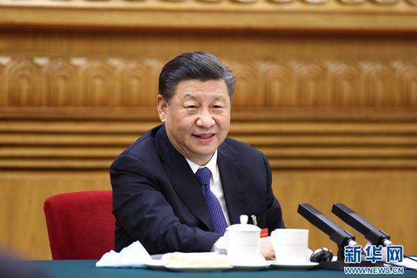 3月5日,中共中央总书记、国家主席、中央军委主席习近平参加十三届全国人大四次会议内蒙古代表团的审议。新华社记者 李学仁 摄