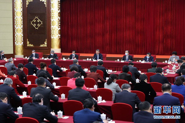 3月6日,中共中央总书记、国家主席、中央军委主席习近平看望参加全国政协十三届四次会议的医药卫生界、教育界委员,并参加联组会,听取意见和建议。中共中央政治局常委、全国政协主席汪洋参加看望和讨论。新华社记者 黄敬文 摄