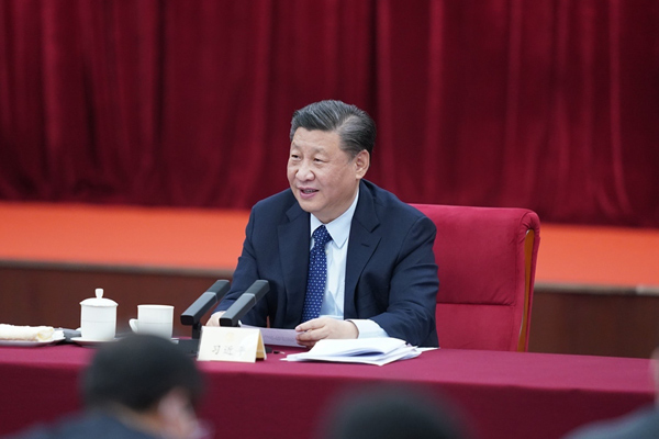 3月6日,中共中央总书记、国家主席、中央军委主席习近平看望参加全国政协十三届四次会议的医药卫生界、教育界委员,并参加联组会,听取意见和建议。中共中央政治局常委、全国政协主席汪洋参加看望和讨论。新华社记者 王晔 摄