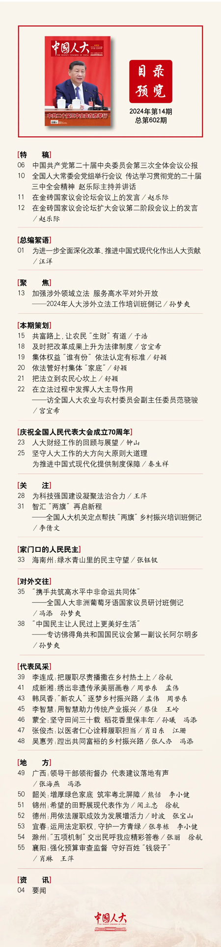 《中国人大》2024年第14期目录