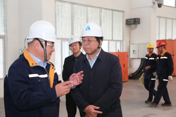 青海省人大常委会党组书记、副主任王黎明(右)在中国铝业青海分公司调研。(青海省人大常委会供图)