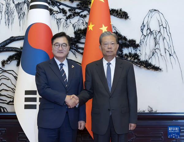 在会见禹元植时,赵乐际表示,中韩既是近邻,也是合作伙伴。今年6月,习近平主席同李在明总统通话,就推动中韩战略合作伙伴关系迈向更高水平达成重要共识。中方愿同韩方一道,在两国元首战略引领下,推动双边关系持续健康稳定发展。中国全国人大愿同韩国国会密切交往,为两国务实合作提供法律保障,更好助力中韩关系发展。