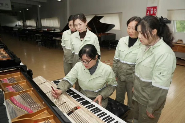 雷春华介绍,以整音环节为例,整音师的选拔聘任极其严苛,从培训到实习到外派学习,有一套严格的职业成长机制。目前参与公司钢琴制造的整音师,大多拥有超过十年的工作经验。