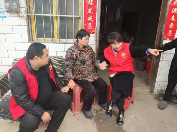 任敏代表(右一)走访村民群众,收集意见建议。(代表供图)