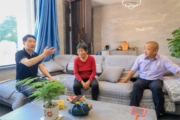 欧阳华代表(左一)走进村民家中倾听群众所思所盼。(代表供图)