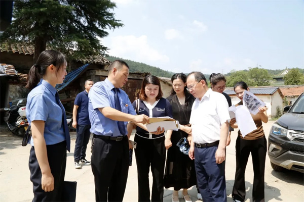 李龙倜代表(前排左三)调研武当山古建筑遗址保护工作。(十堰市人大常委会供图)