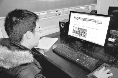 湖南省怀化市溆浦县洑水湾乡选调生戴欣正在互联网上观看两会内容。本报通讯员 李纯摄