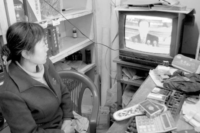 3月5日,舟曲受灾群众于小兰正在收看两会实况。本报通讯员冯晓宏摄