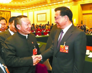 中共中央政治局常委、国务院副总理李克强亲切接见河南代表团全国人大代表刘文新。