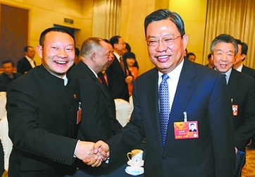 全国政协副主席、河南省委书记卢展工与刘文新代表在十二届全国人大一次会议合影。