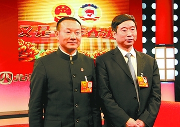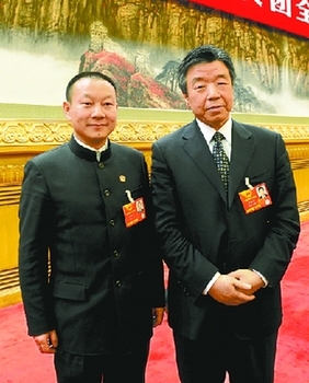 河南省省长郭庚茂与刘文新代表在北京“两会”期间合影。