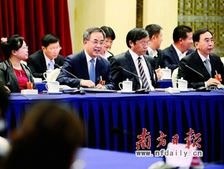 6日,全国人大会议广东代表团对中外记者开放,胡春华、朱小丹等回答记者提问。南方日报特派记者 王辉 摄
