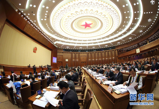 3月12日,十二届全国人大一次会议主席团在北京人民大会堂举行第三次会议。主席团常务主席张德江主持会议。 (新华社记者 兰红光摄)