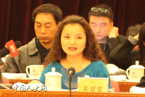 吴碧霞代表在会议上发言 王芳 摄