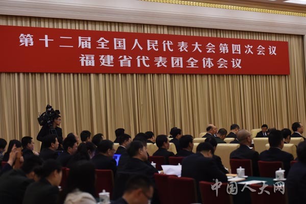 3月6日,十二届全国人大四次会议福建代表团举行全体会议,审议政府工作报告。罗荣 摄