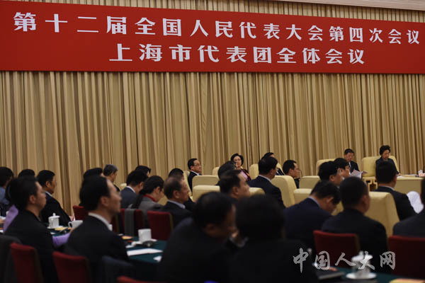 3月6日,十二届全国人大四次会议上海代表团举行全体会议,审议政府工作报告。罗荣 摄