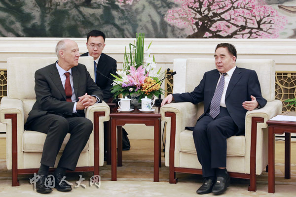 7月10日下午,全国人大常委会委员、教科文卫委员会主任委员柳斌杰在人民大会堂会见了世界知识产权组织总干事高锐一行。(办公室 何拓)