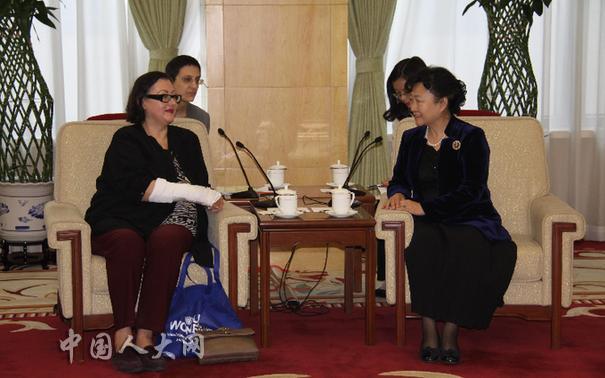 2014年4月9日上午,全国人大外事委员会赵少华副主任委员应约在全国人大机关办公楼会见了奥地利《联合国消除对妇女一切形式歧视公约》委员会第2015-2018届委员候选人莉莲·霍夫迈斯特博士一行3人,双方主要就反家庭暴力的立法工作和实践进行了友好坦诚的座谈交流。(外事委供稿)