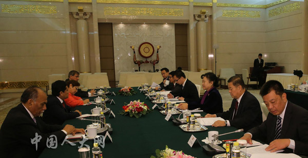 11月3日上午,赵少华副主任委员在人民大会堂主持与代表团的工作会谈