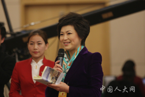 3月10日上午,十二届全国人大三次会议在梅地亚中心举行记者会,人力资源和社会保障部部长尹蔚民、副部长胡晓义对就业和社会保障的相关问题回答中外记者的提问。图为成都电视台记者提问。中国人大网 罗荣 摄