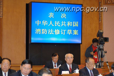 10月28日 十一届全国人大常委会第五次会议表决中华人民共和国消防法修订草案