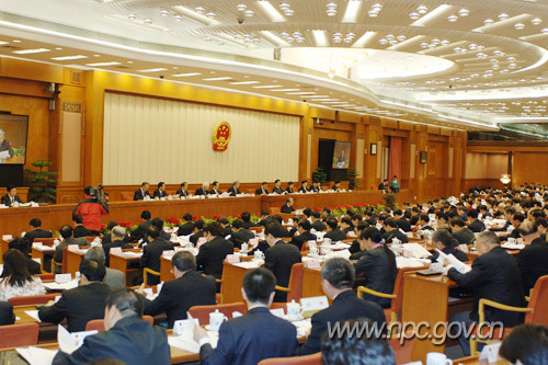 The Standing Committee of the 11th National People's Congress (NPC) will discuss the amendment or adoption of 18 laws, hear seven work reports and conduct reviews on the implementation of five laws in 2008. (Photo by Wang Xinqing) |