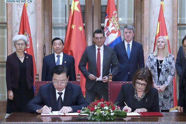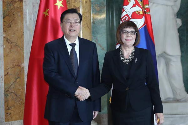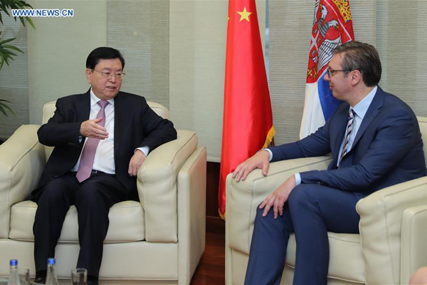 Zhang, chairman of the Standing Committee of China's National People's Congress (NPC), paid an official friendly visit to Serbia on July 16-18, during which he met with Serbian President Aleksandar Vucic, Parliament Speaker Maja Gojkovic and Prime Minister Ana Brnabic.
