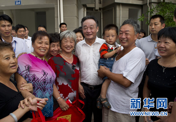 9月5日至7日,中共中央政治局常委、全国人大常委会委员长吴邦国在福建调研。这是吴邦国在厦门市湖里区高林居住区看望居民。 新华社记者李学仁 摄