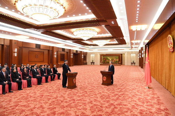 1月30日下午,十二届全国人大常委会在人民大会堂举行宪法宣誓仪式。全国人大常委会副委员长万鄂湘主持并监誓。