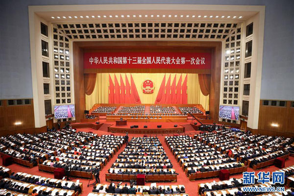 3月13日,十三届全国人大一次会议在北京人民大会堂举行第四次全体会议。 新华社记者 姚大伟 摄