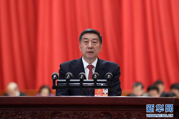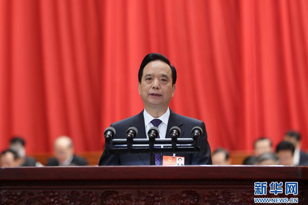 3月13日,十三届全国人大一次会议在北京人民大会堂举行第四次全体会议。受十二届全国人大常委会委托,全国人大常委会副委员长李建国向十三届全国人大一次会议作关于中华人民共和国监察法草案的说明。新华社记者 王晔 摄