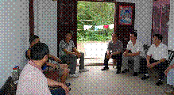 张明俊代表(右一)在人代会召开前走访农户,为提议案、建议做准备。(作者供图)
