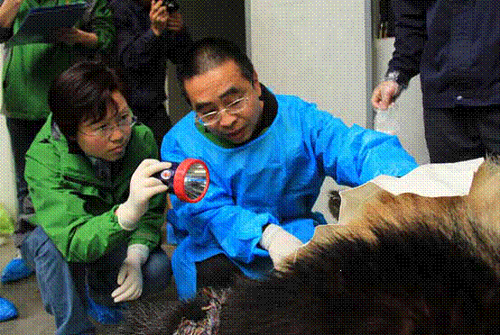 侯蓉代表(左一)在抢救受伤的大熊猫。(作者供图)