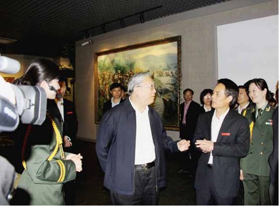 4月13日,路甬祥副委员长率领全国人大常委会文物保护法执法检查组在江西八一南昌起义纪念馆考察革命文物的保护情况。摄影/马怡运