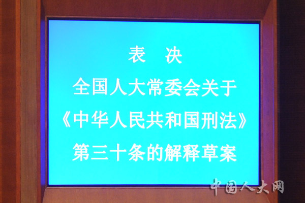 表决全国人大常委会关于《中华人民共和国刑法》第三十条的解释草案