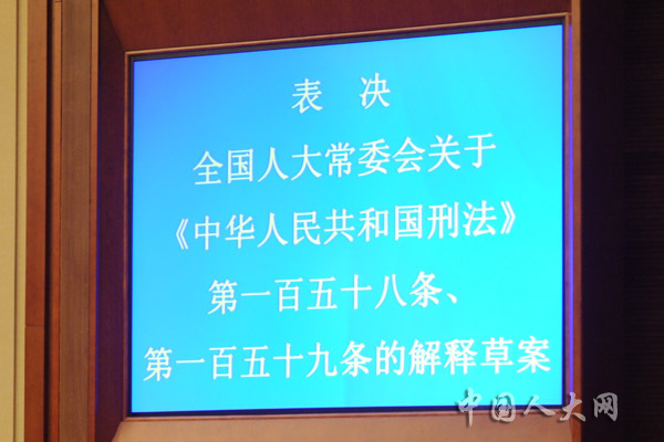 表决全国人大常委会关于《中华人民共和国刑法》第一百五十八条、第一百五十九的解释草案