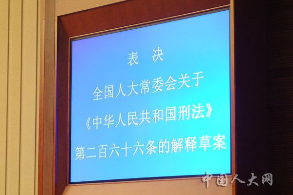 表决全国人大常委会关于《中华人民共和国刑法》第二百六十六条的解释草案