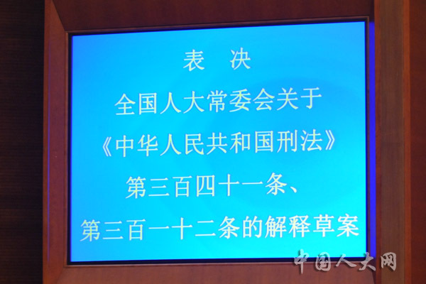 表决全国人大常委会关于《中华人民共和国刑法》第三百四十一条、第三百一十二的解释草案