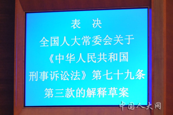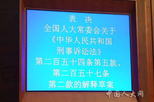表决全国人大常委会关于《中华人民共和国刑事诉讼法》第二百五十四条第五款、第二百五十七条第二款的解释草案
