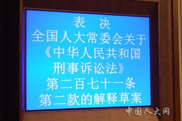 表决全国人大常委会关于《中华人民共和国刑事诉讼法》第二百七十一条第二款的解释草案