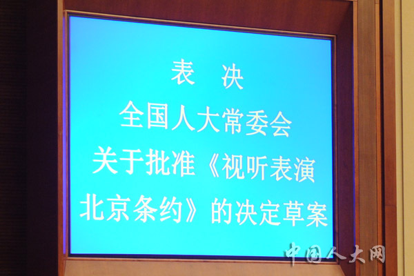 表决全国人大常委会关于批准《视听表演北京条约》的决定草案