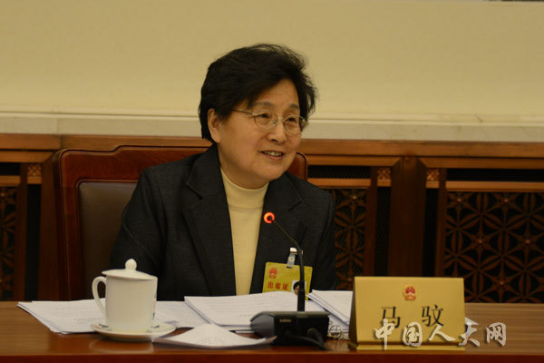 2月23日上午,十二届全国人大常委会第三十三次会议举行分组会,审议关于实行宪法宣誓制度的决定修订草案,关于十三届全国人大代表的代表资格的审查报告,十三届全国人大一次会议议程草案、主席团和秘书长名单草案、列席人员名单草案,关于个别十二届全国人大代表的代表资格的报告,中央军委关于提请审议批准增补人民解放军选举委员会成员的议案,任免案。图为全国人大常委会委员马馼在分组会上发言。中国人大网 冯涛 摄