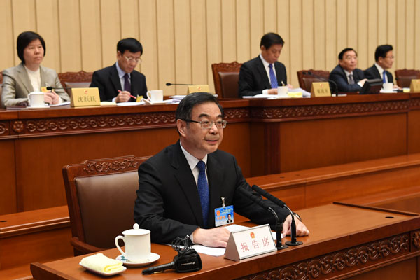 4月25日上午,十三届全国人大常委会第二次会议举行第一次全体会议。最高人民法院院长周强作关于提请审议《关于在上海设立金融法院的决定(草案)》议案的说明。中国人大网 李杰摄