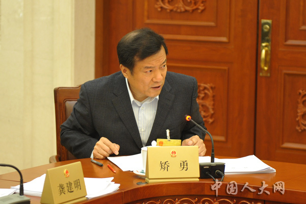 4月26日上午,十三届全国人大常委会第二次会议举行分组会议,审议全国人大常委会关于国务院机构改革涉及法律规定的行政机关职责调整问题的决定草案,关于在上海设立金融法院的决定草案,第十三届全国人大常委会代表资格审查委员会主任委员、副主任委员、委员名单草案,任免案。图为全国人大常委会委员矫勇在分组会上发言。中国人大网 冯涛 摄