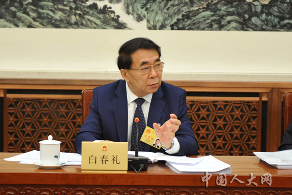 4月27日上午,十三届全国人大常委会第二次会议举行分组会议,审议刑事诉讼法修正草案,国务院关于构建现代农业体系深化农业供给侧结构性改革工作情况的报告,拟提请表决事项。图为全国人大常委会委员白春礼在分组会上发言。中国人大网 冯涛 摄