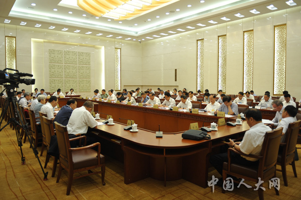 7月9日下午,十三届全国人大常委会第四次会议举行分组会议,审议全国人大常委会执法检查组关于检查《中华人民共和国大气污染防治法》实施情况的报告,全国人大常委会关于全面加强生态环境保护依法推动打好污染防治攻坚战的决议草案。图为分组会会场。中国人大网 冯涛 摄