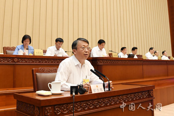 8月27日下午,十三届全国人大常委会第五次会议举行第一次全体会议。全国人大宪法和法律委员会副主任委员沈春耀作关于《中华人民共和国刑事诉讼法(修正草案)》修改情况的汇报。中国人大网 李杰摄