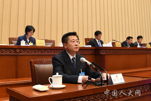10月22日下午,十三届全国人大常委会第六次会议举行第一次全体会议。受国务院委托,司法部副部长赵大程作关于提请审议《<中华人民共和国野生动物保护法>等15部法律的修正案(草案)》议案的说明。中国人大网 李杰摄